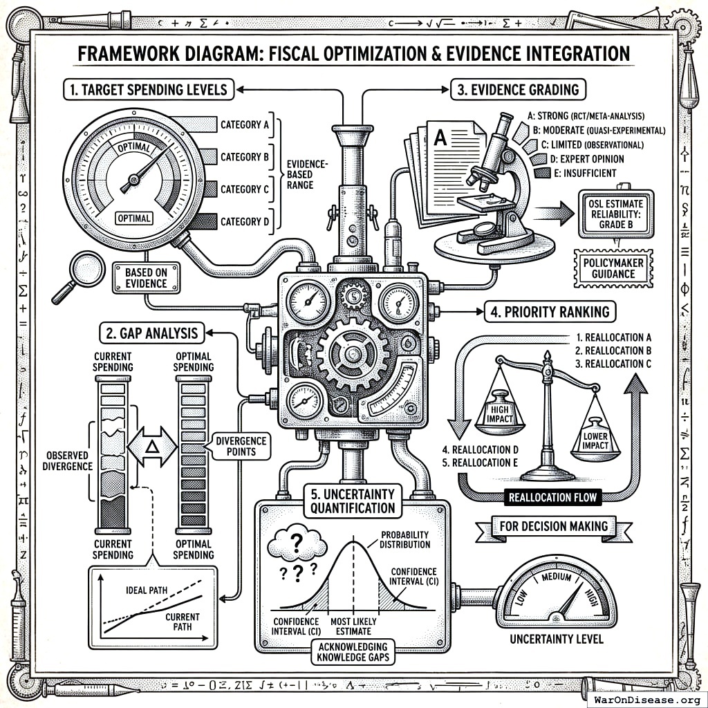 The result is a gap analysis showing which categories are underfunded relative to evidence-based optimal levels, enabling systematic reallocation from overinvestment to underinvestment. Applied to the US federal budget, the framework identifies pragmatic clinical trials as the most severely underinvested category (9,900% below optimal with 637:1 benefit-cost ratio), followed by vaccinations, basic research, and early childhood education.